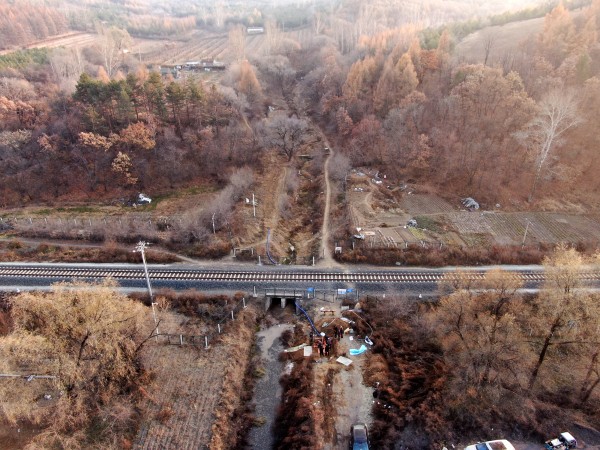 面对这一问题,鸡西市工务段转变了工作思路,决心从根源上解决问题。在充分调查的基础上,他们决定采取“堵疏结合、重点疏浚”的方案:通过铺设管道,从南方引泉水。线的北侧。